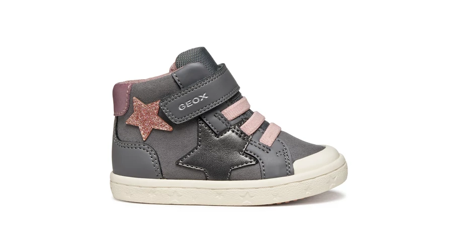 Acești pantofi de tranziție GEOX pentru fete combină confortul cu un aspect modern. Baza gri este accentuată cu detalii roz cu model de stea pentru un stil unic și jucăuș. Pantoful este fabricat cu tehnologia patentată GEOX pentru talpă respirabilă, care asigură o ventilație adecvată a piciorului, împiedicând în același timp pătrunderea umezelii. Lungimea branțului este vizibilă după selectarea mărimii.