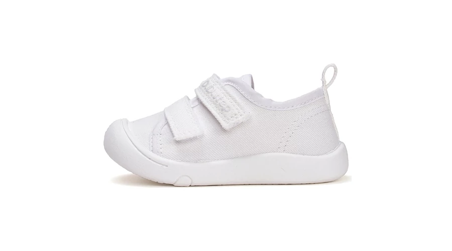 Acești pantofi D.D.Step din pânză albă sunt o alegere curată, elegantă și extrem de confortabilă pentru purtarea zilnică sau pentru orele de sală. Partea superioară oferă respirabilitate naturală, în timp ce talpa flexibilă și ușoară permite mișcarea liberă a picioarelor în curs de dezvoltare. Datorită designului cu velcro, pantofii sunt ușor de încălțat și se potrivesc bine pe picior.