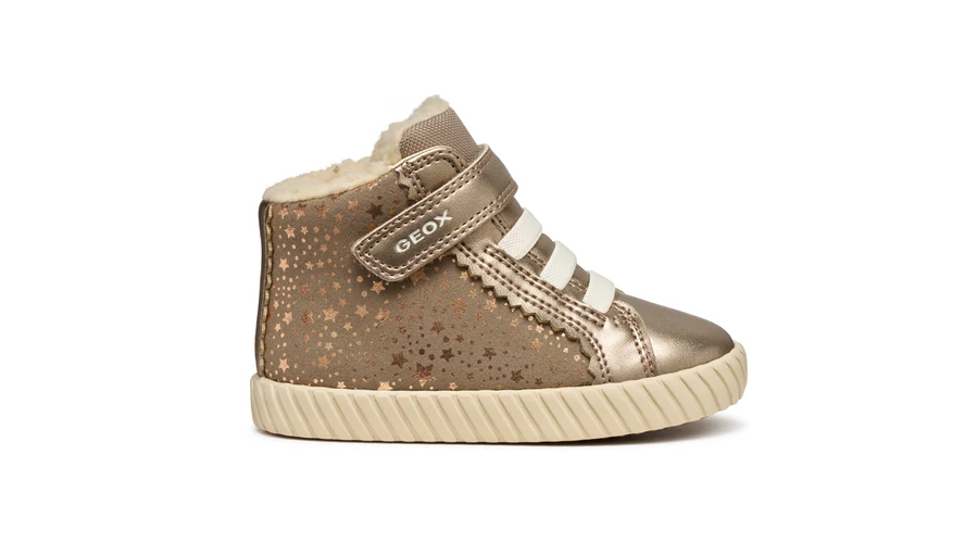 Aceste pantofi Geox aurii pentru fete, cu model în stea, sunt concepuți pentru zilele reci, cu o căptușeală călduroasă și o talpă respirabilă. Închiderea cu velcro îi face ușor de încălțat, iar interiorul moale asigură confort pe tot parcursul zilei. Detaliile strălucitoare adaugă un aspect jucăuș, în timp ce talpa flexibilă asigură o mișcare stabilă și naturală. Perfecți pentru plimbările de iarnă și pentru grădinița de zi cu zi.
