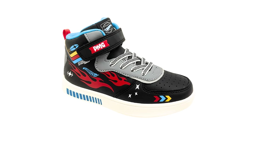 A Hoot Wheels TurboFlame gyerek sportcipő a sebesség és a stílus tökéletes kombinációja, amely minden kisfiú álma. A vagány lángmintás, versenyautó ihlette dizájn és a feltűnő színek azonnal magukra vonzzák a tekintetet. A kényelmes tépőzáras gyerekcipő egyszerűen fel- és levehető, így ideális mindennapi használatra, óvodába, iskolába vagy játszótérre. Strapabíró, könnyű szerkezetének és puha talpának köszönhetően egész napos komfortot biztosít, miközben támogatja a gyermek lábának természetes mozgását. Tökéletes választás aktív, mozgékony gyerekeknek, akik imádják a sportos, menő cipőket.